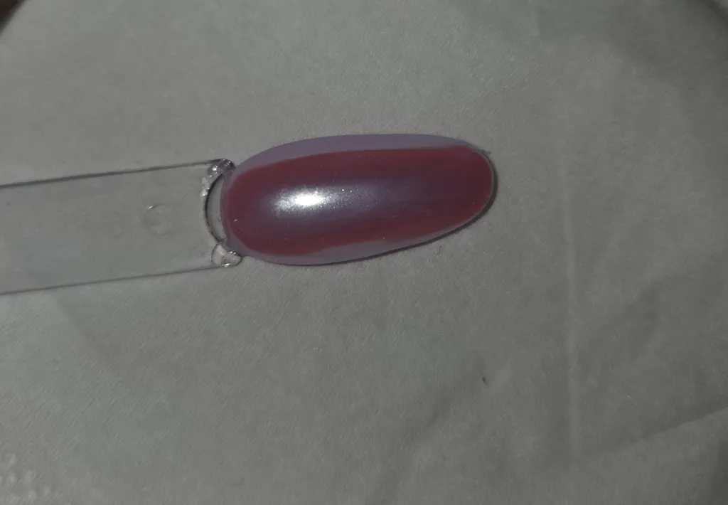 The blue effect of the chrome is barely visible. It is more like a silvery effect that darkens the colour you put it over. This swatch pictured was put over a light pink